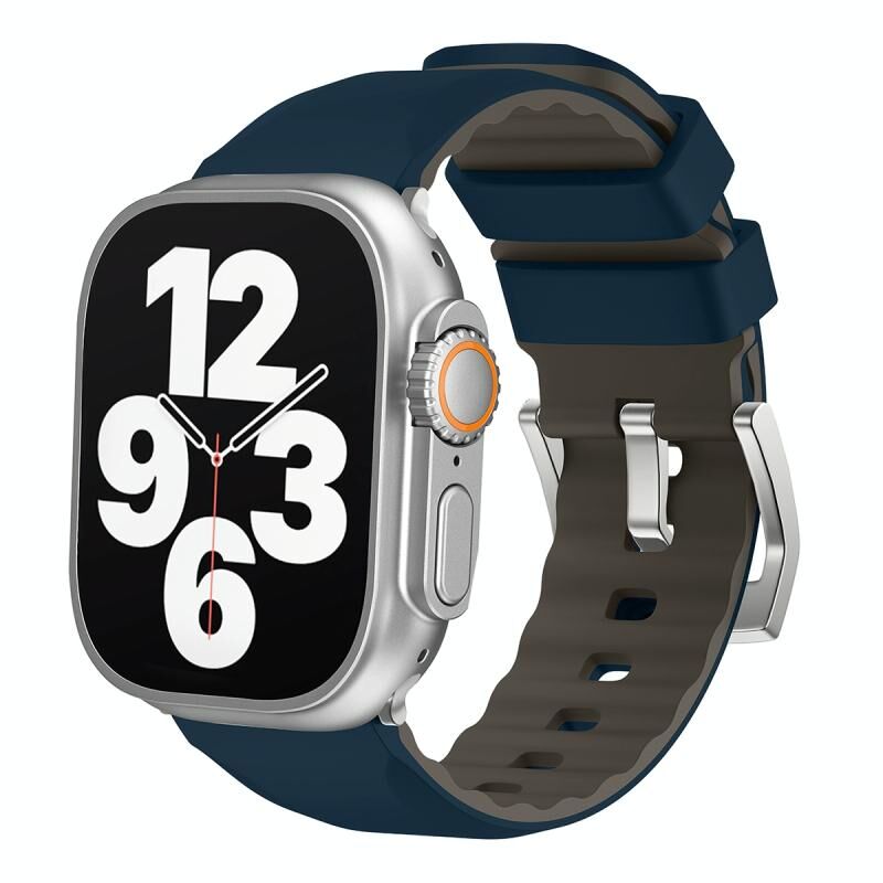 Για Apple Watch Series 5 44mm Διχρωματικό Λουράκι Σιλικόνης (Μπλε της νύχτας)