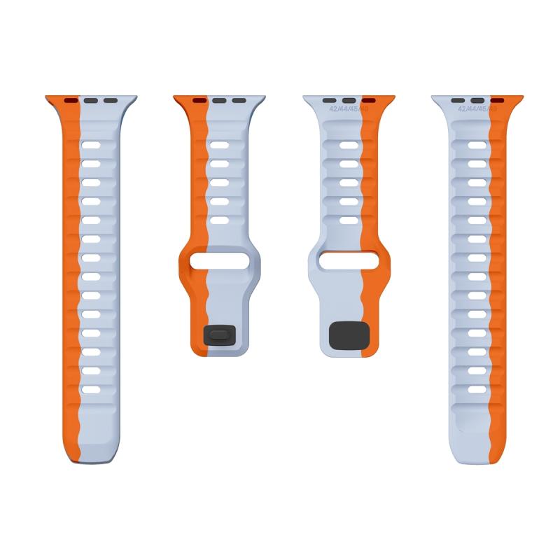 Για Apple Watch Series 5 44mm Λουρί Σιλικόνης με Αγκράφα Αντίστροφης Καρφίτσας με Υφή Κύματος (Πορτοκαλί Μαύρο)