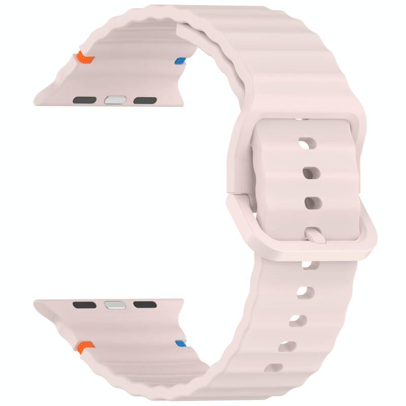 Για Apple Watch Series 5 44mm Λουρί Σιλικόνης με Ραφή Κυματιστής Υφής (Λευκό)