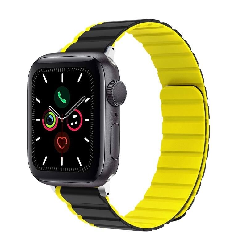 Για Apple Watch Series 5 44mm ZGA Διχρωματικό Μαγνητικό Λουράκι Σιλικόνης (Μαύρο+Πορτοκαλί) (ZGA)