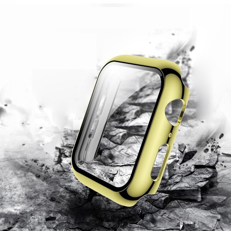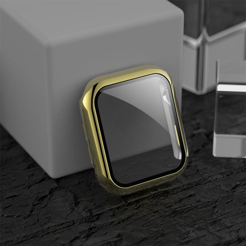For Apple Watch Series 5 & 4 44mm Electroplated PC Case + Tempered Film Integrated Protective Cover(Gold)