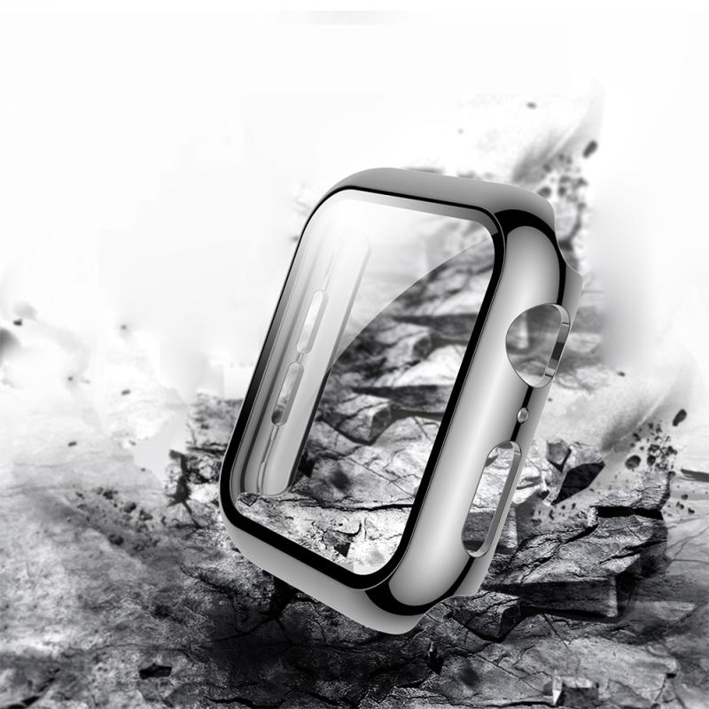 For Apple Watch Series 5 & 4 44mm Electroplated PC Case + Tempered Film Integrated Protective Cover(Silver)
