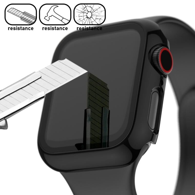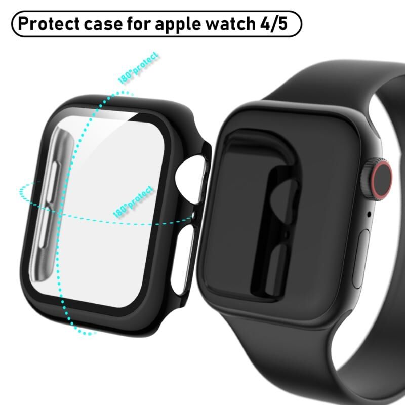 For Apple Watch Series 5 & 4 44mm Full Coverage Plating Glass Case(Black)