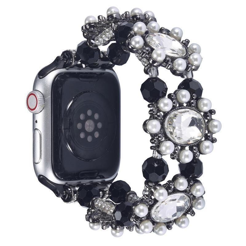 For Apple Watch Series 6 40mm Beaded Pearl Gemstone Bracelet Watch Band(Black)