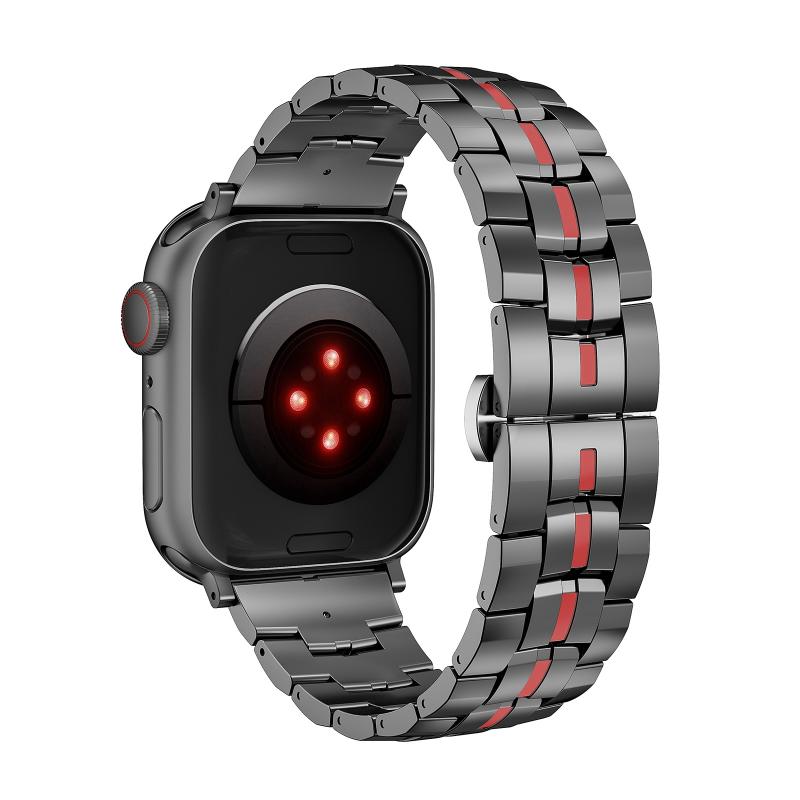 For Apple Watch Series 6 40mm Butterfly Buckle 5-Beads Metal Watch Band(Black Red)
