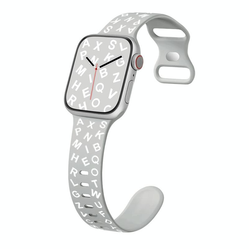 For Apple Watch Series 6 40mm English Letters Style Butterfly Buckle Silicone Watch Band(Grey White)