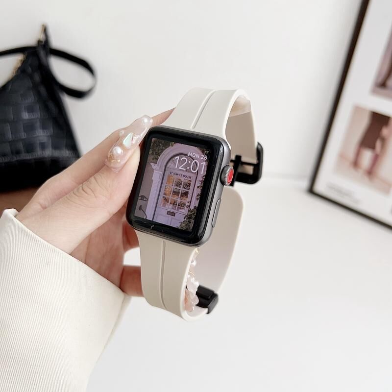 Για Apple Watch Series 6 40mm Μαγνητικό Λουρί Σιλικόνης με Αγκράφα Τετράγωνου Σχήματος (Αστρόφωτο)