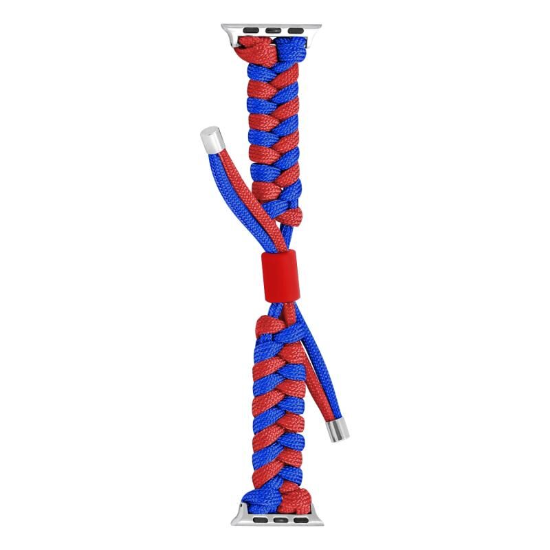 For Apple Watch Series 6 40mm Paracord Fishtail Braided Silicone Bead Watch Band(Blue Red)