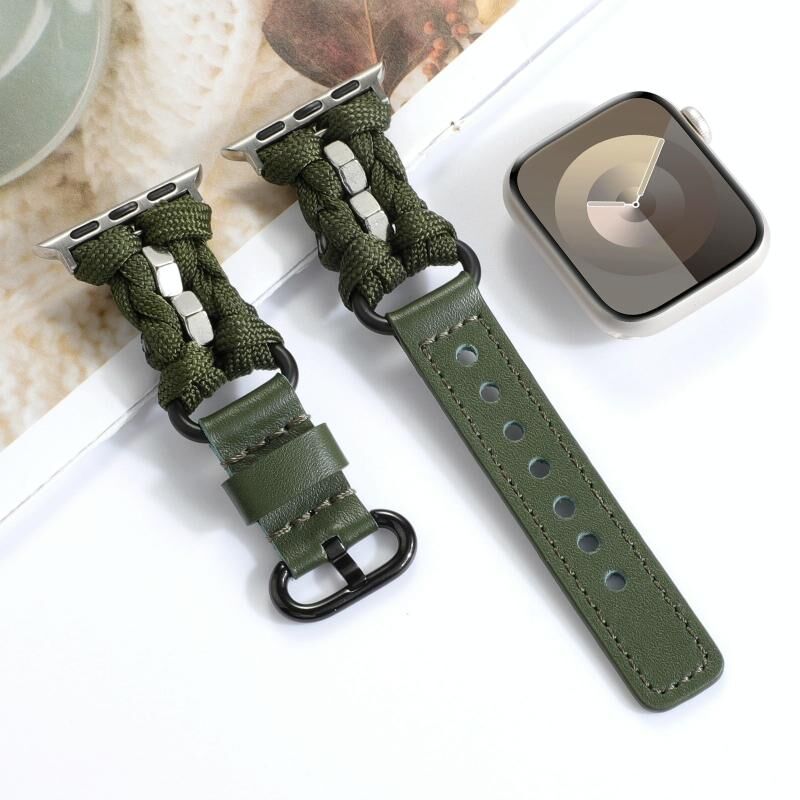 Για Apple Watch Series 6 40mm Λουρί Παρακορδίου με Γνήσιο Δέρμα (Λευκό Χακί)