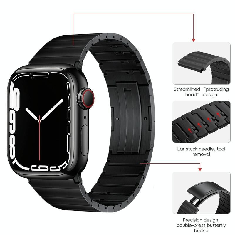Για Apple Watch Series 6 40mm PG65 Μονόκροτο Μπαμπού Αρθρώσεις Ελατηρίου Λουρί Ρολογιού από Τιτάνιο (Μαύρο)