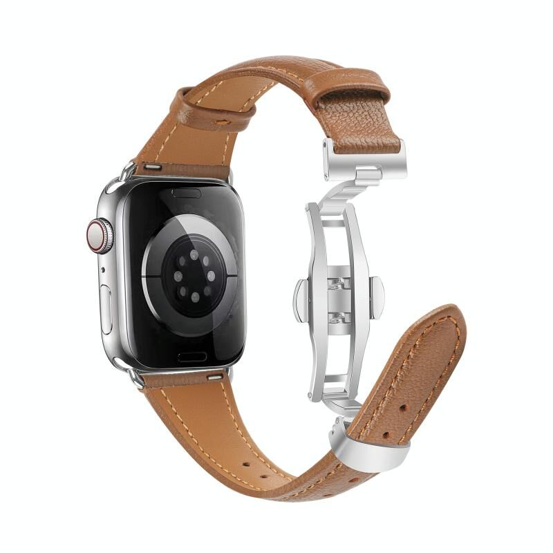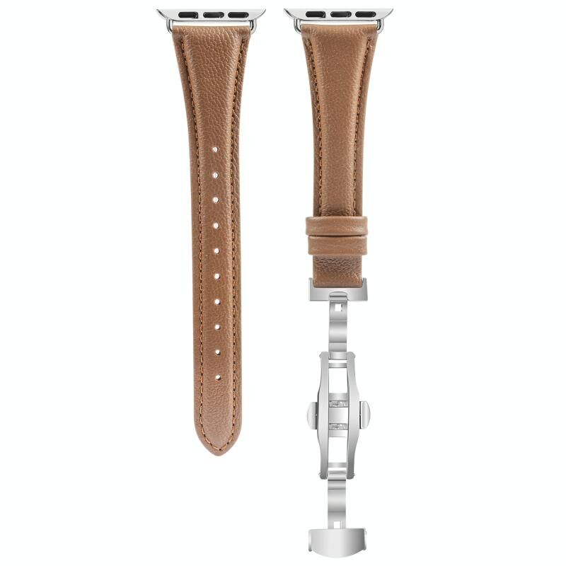Για Apple Watch Series 6 40mm Λουρί ρολογιού από απλό δέρμα με αγκράφα πεταλούδας (Σκούρο καφέ+Ασημί)