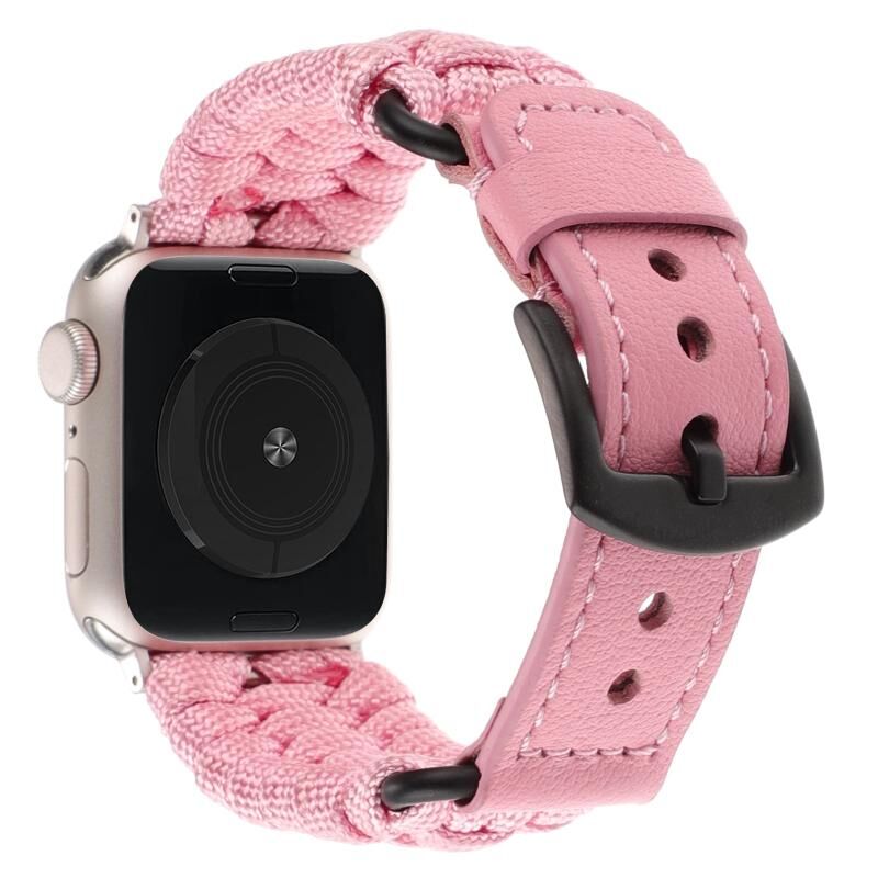 Για Apple Watch Series 6 40mm Απλό Λουρί Παρακορδίου από Γνήσιο Δέρμα (ρόζ)