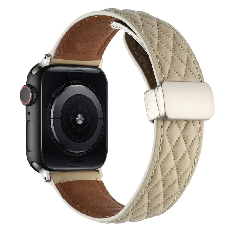 Για Apple Watch Series 6 40mm Λουρί Ρολογιού από Δέρμα με Μαγνητική Αγκράφα Δίπλωσης σε Σχήμα Ρόμβου (Χρώμα Starlight)