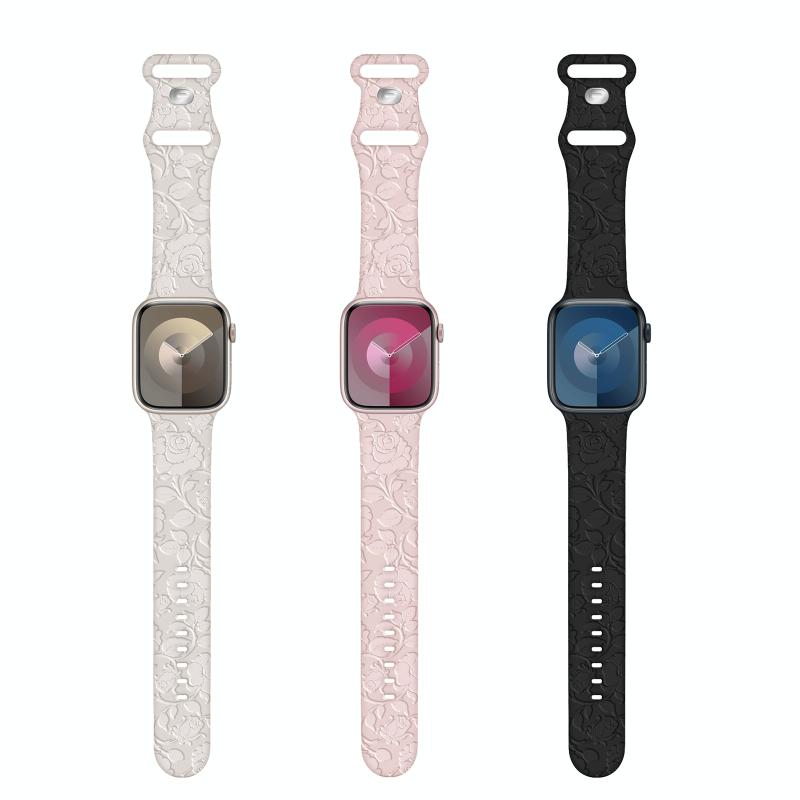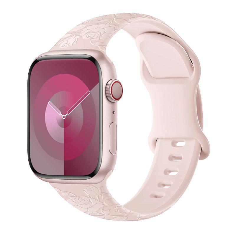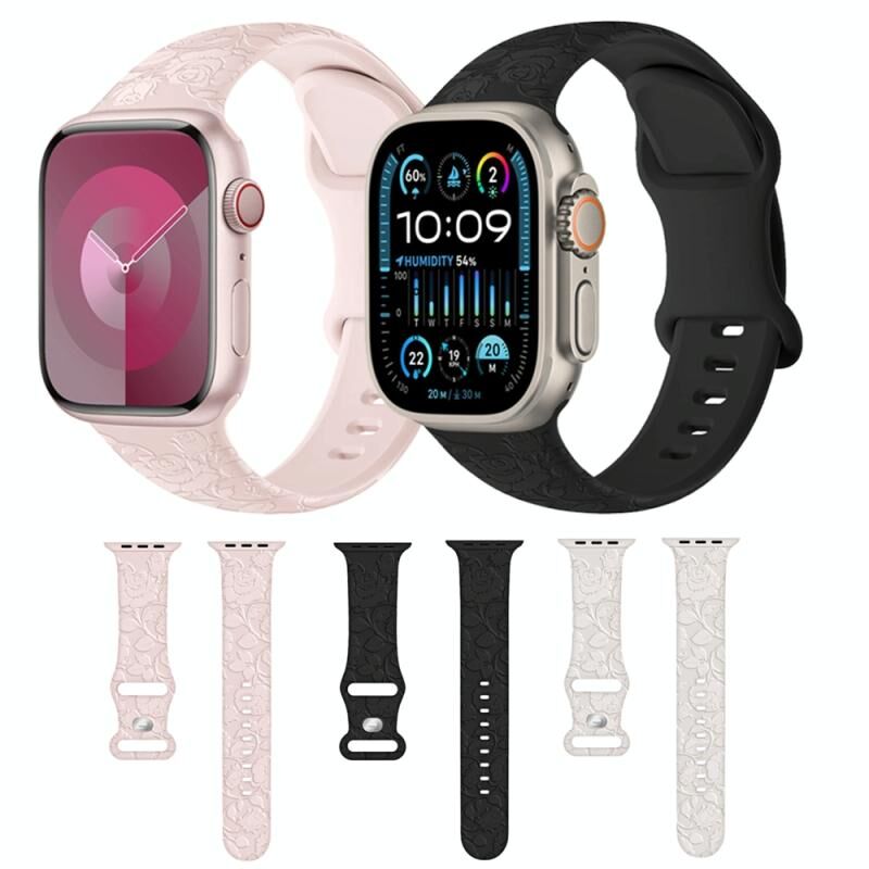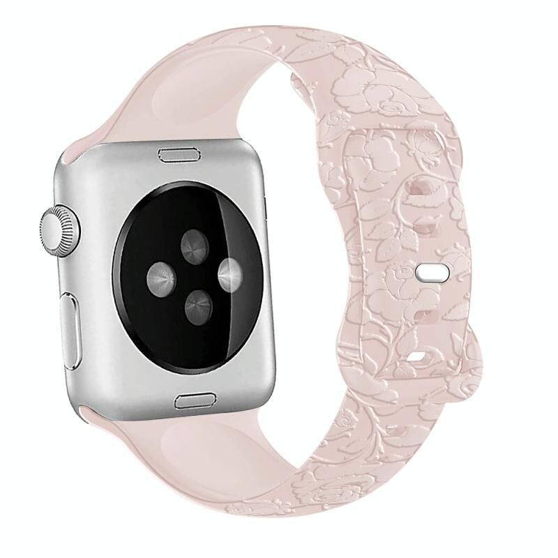 For Apple Watch Series 6 40mm Rose Embossed Silicone Watch Band(Pink)