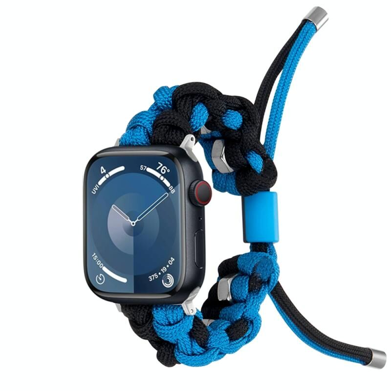 For Apple Watch Series 6 40mm Screw Nut Dual-Color Braided Paracord Watch Band(Black Blue)