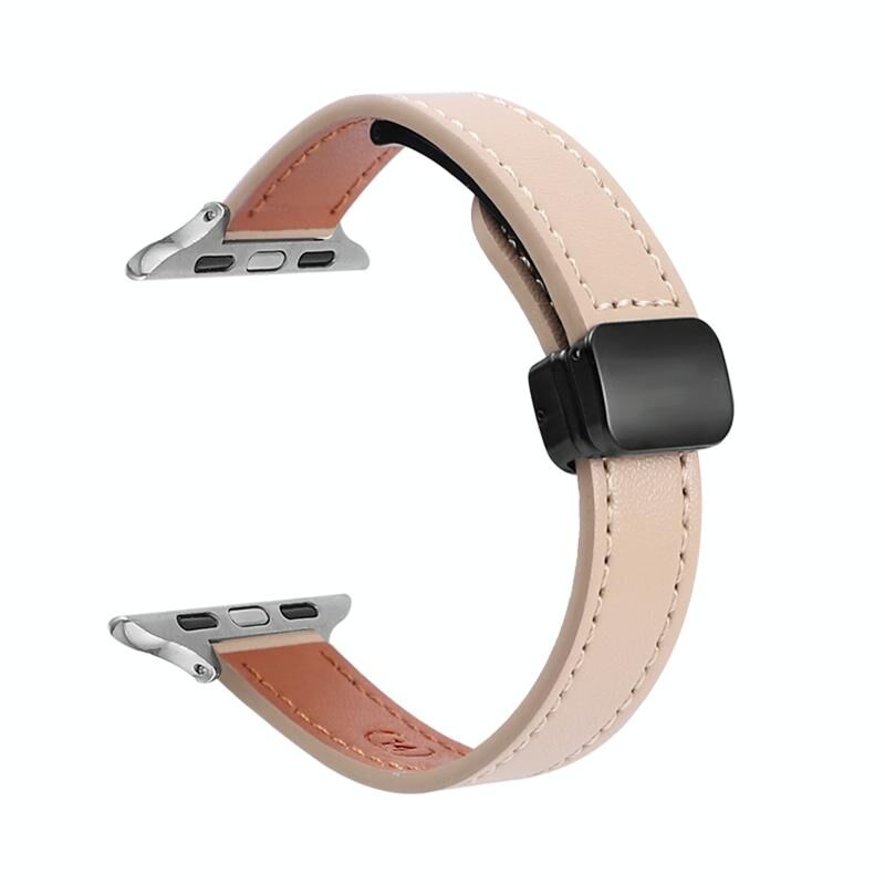 Για Apple Watch Series 6 40mm Λεπτή Μαγνητική Αγκράφα Αυθεντικό Δερμάτινο Λουρί (Απλό Βερίκοκο)