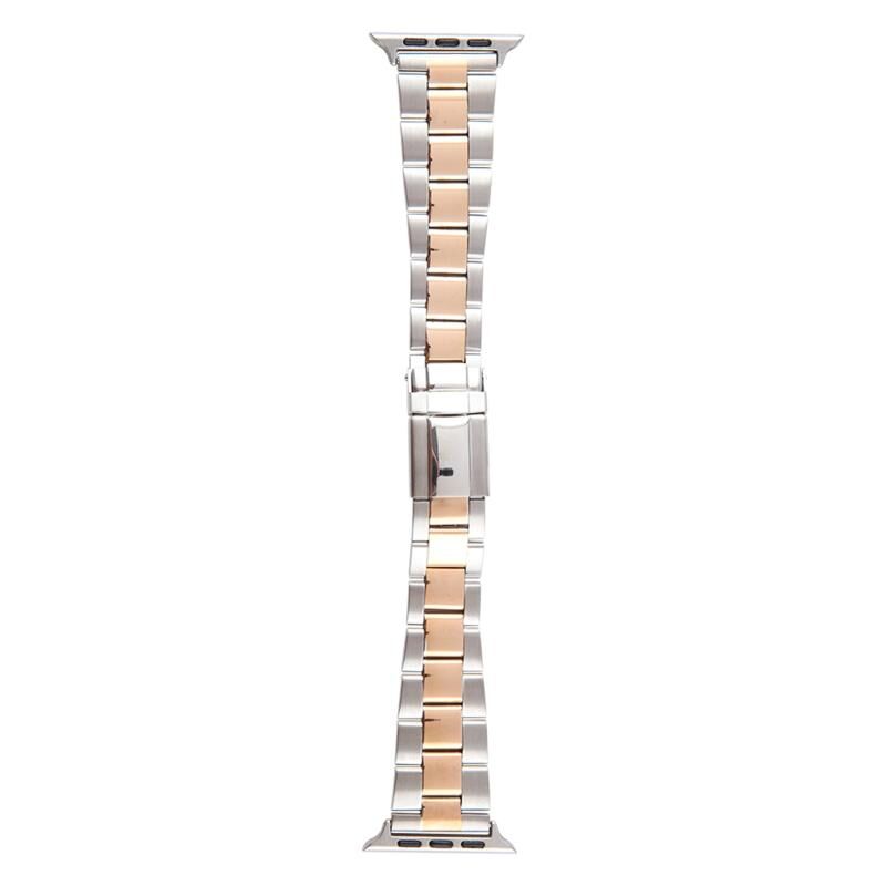 For Apple Watch Series 6 40mm Three-Bead Stainless Steel Watch Band(Silver Rose Gold)