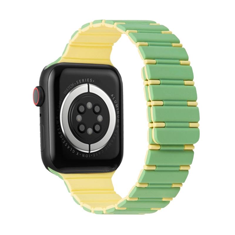 Για Apple Watch Series 6 40mm Διχρωματικό Μαγνητικό Λουράκι Σιλικόνης (Γαλάζια Ομίχλη Πορτοκαλί)