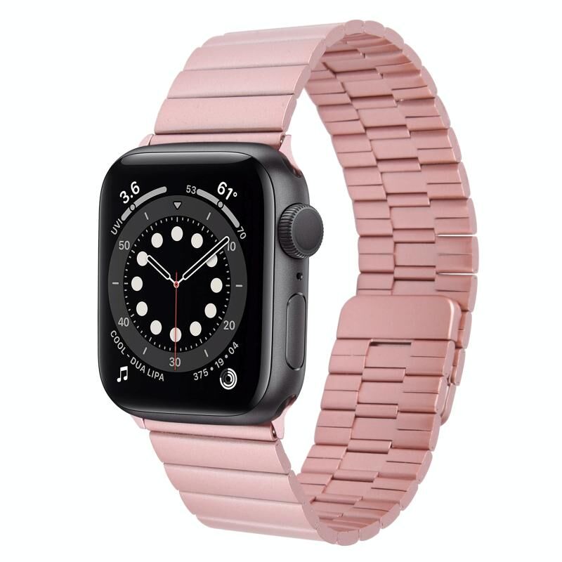Για Apple Watch Series 6 44mm Μπαμπού Ανοξείδωτο Ατσάλι Μαγνητικό Λουράκι Ρολογιού (ρόζ)