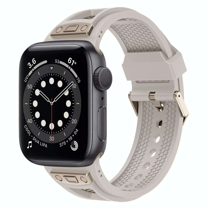Για Apple Watch Series 6 44mm Αναπνεύσιμος ιμάντας ρολογιού από ανοξείδωτο ατσάλι Mesh TPU (Τιτάνιο Starlight)