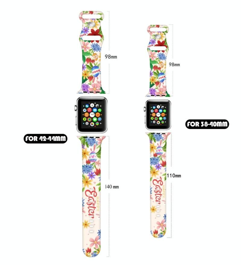 Για Apple Watch Series 6 44mm Λουρί Σιλικόνης με Αγκράφα Πεταλούδας με Εκτύπωση Πασχαλινή (Χρώμα Λουλούδια)