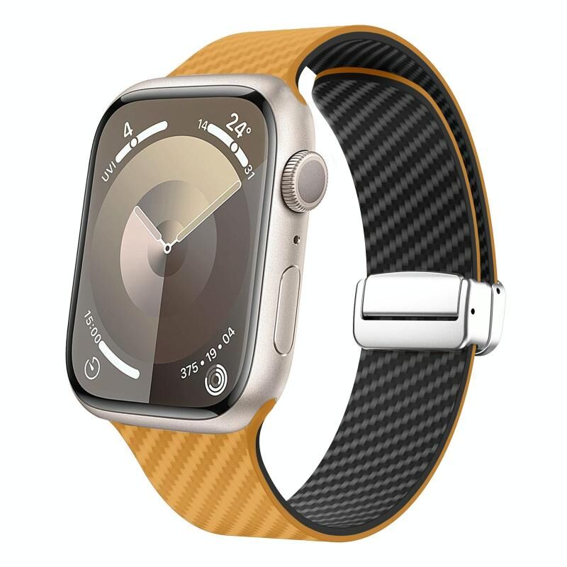 Για Apple Watch Series 6 44mm Λουρί ρολογιού από ανθρακονήματα με μαγνητική αγκράφα ασημί (Ανοιχτό καφέ μαύρο)
