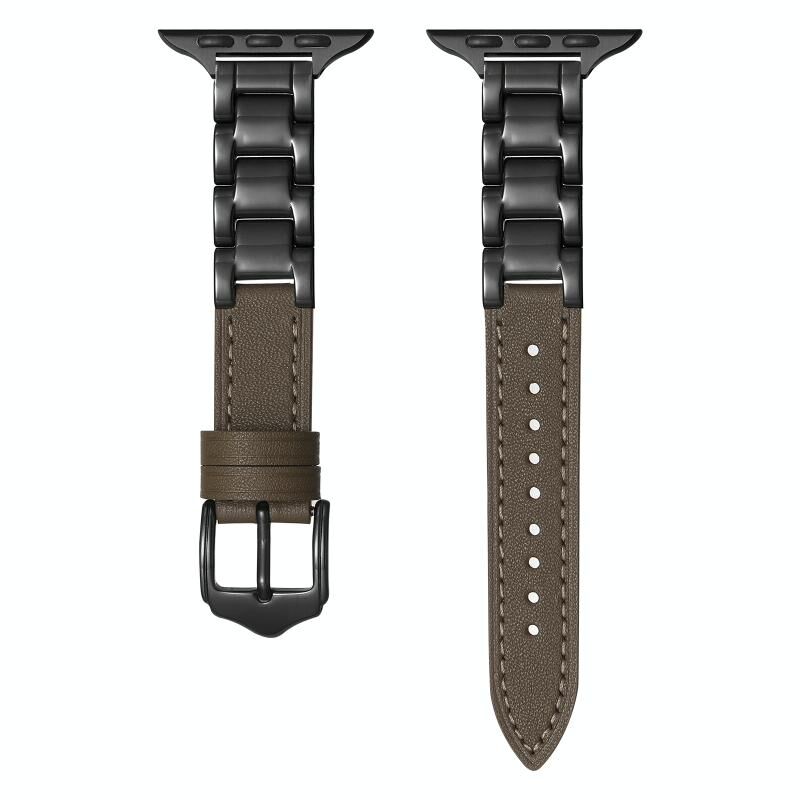 Για Apple Watch Series 6 44mm Κεραμικό Δέσιμο Χρώματος Δερμάτινο Λουρί Αντίθεσης (Μπεζ+Μαύρο+Μαύρη Αγκράφα)