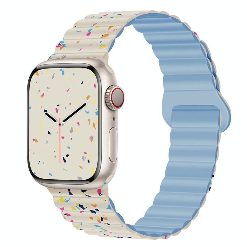 Για Apple Watch Series 6 44mm Έγχρωμα Σημεία Μαγνητικό Λουράκι Σιλικόνης (Λευκό)