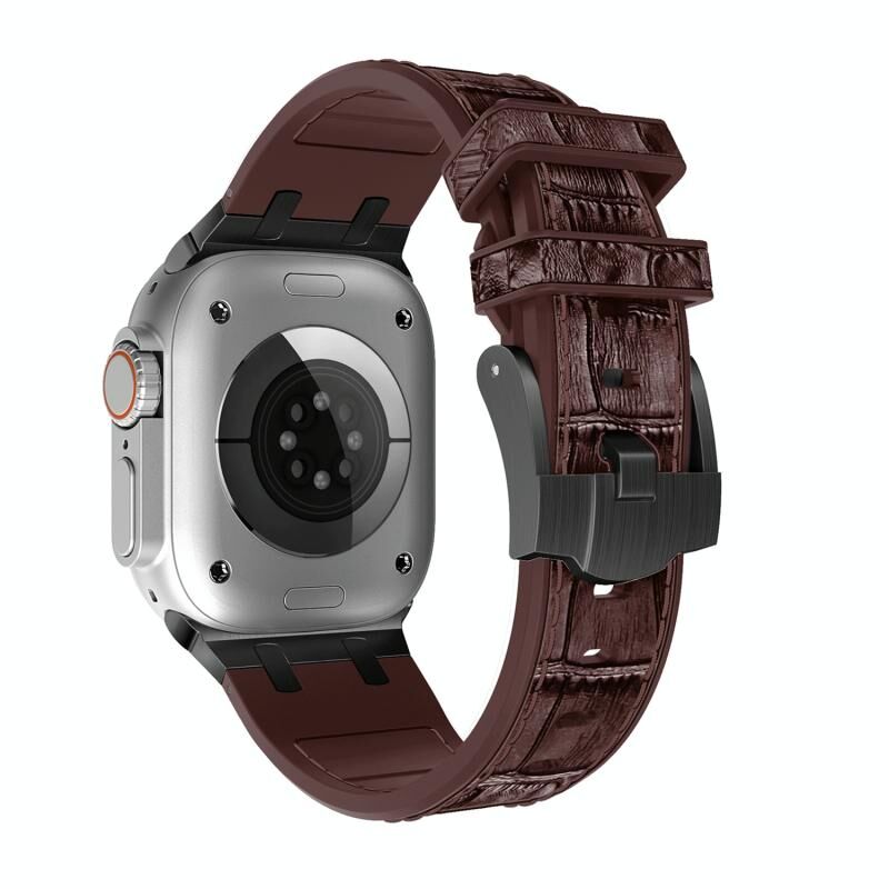 Για Apple Watch Series 6 44mm Λουρί Σιλικόνης Υγρού με Υφή Κροκόδειλου (Μαύρο σκούρο καφέ)