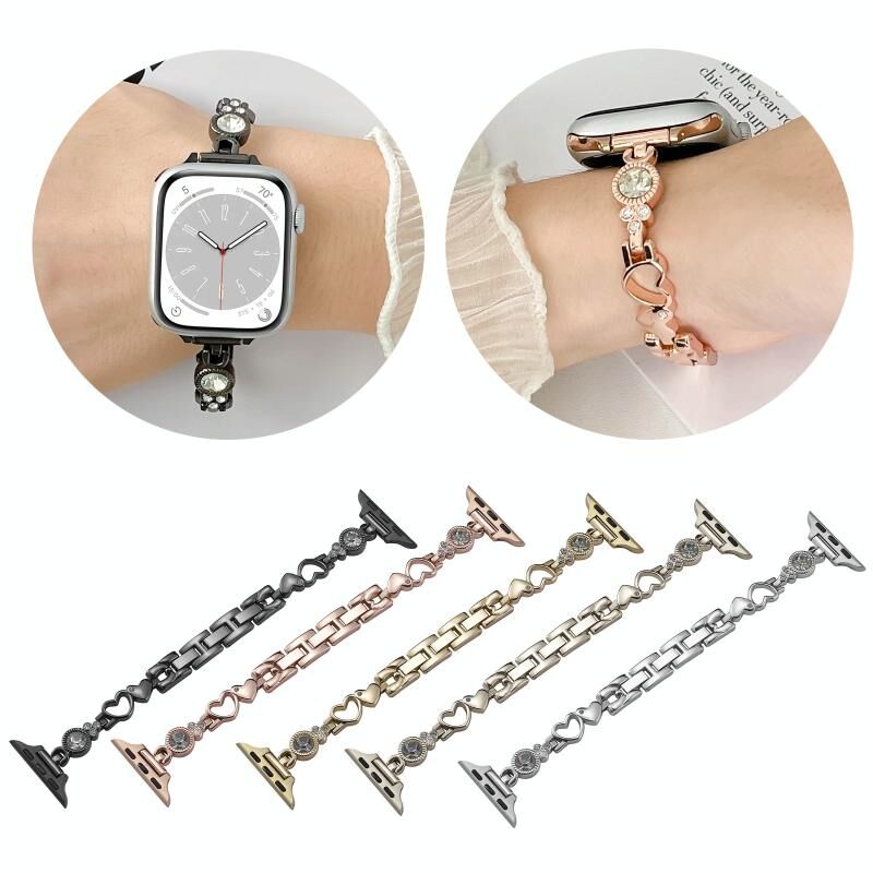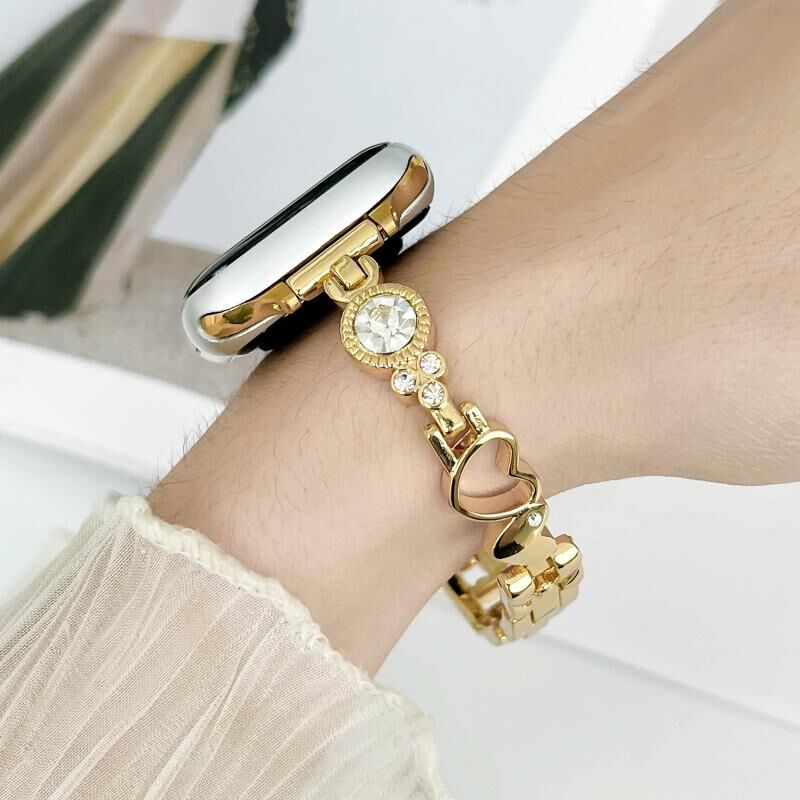 Για Apple Watch Series 6 44mm Διαμαντένιες Καρδιές Μεταλλική Αλυσίδα για Λουράκι Ρολογιού (Χρυσός)