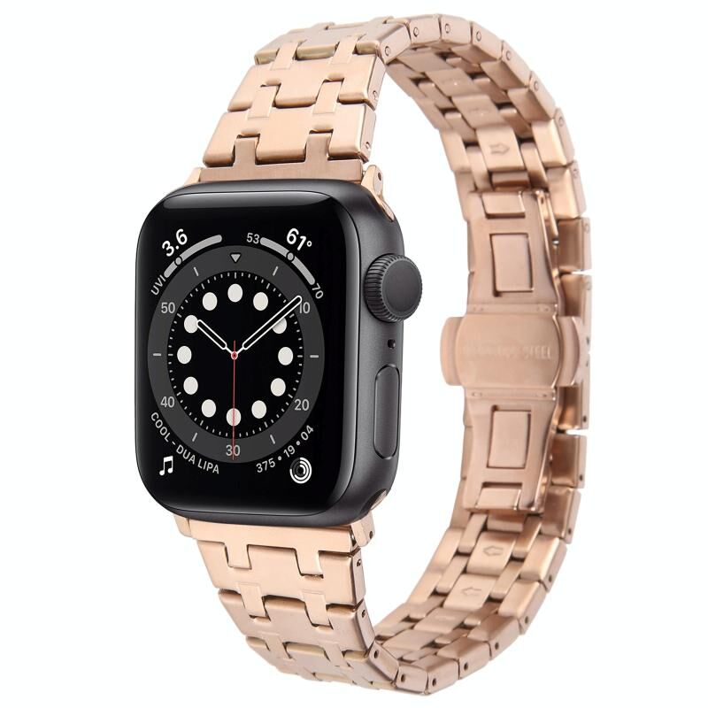 Για Apple Watch Series 6 44mm Διπλό Δαχτυλίδι από Ανοξείδωτο Ατσάλι (Ροζ χρυσός)