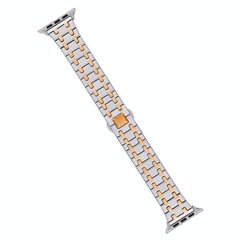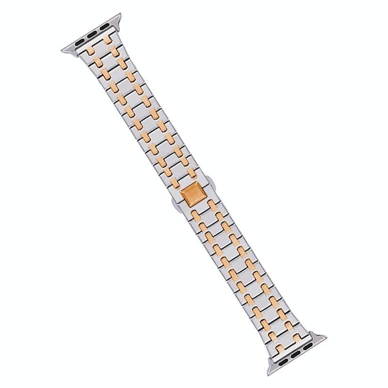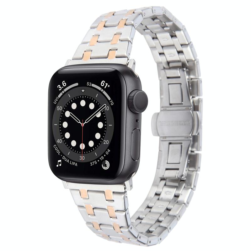 For Apple Watch Series 6 44mm Double T Stainless Steel Watch Band(Silver Rose Gold)