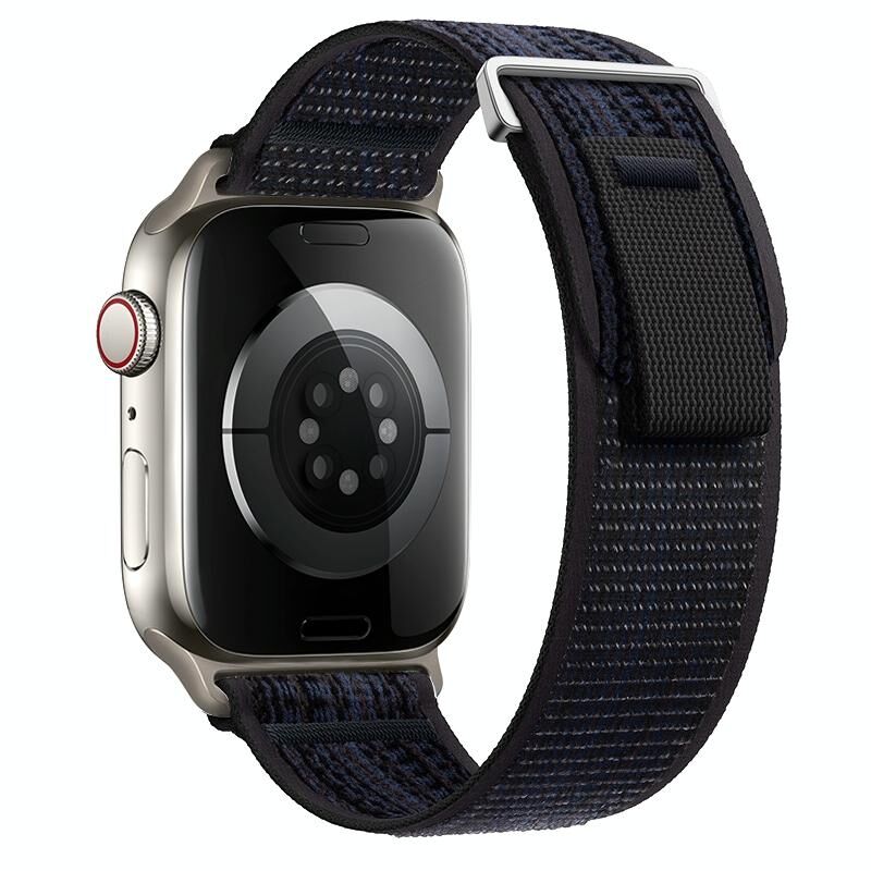 Για Apple Watch Series 6 44mm Διπλό Λουρί Νάιλον (Μαύρο μπλε)