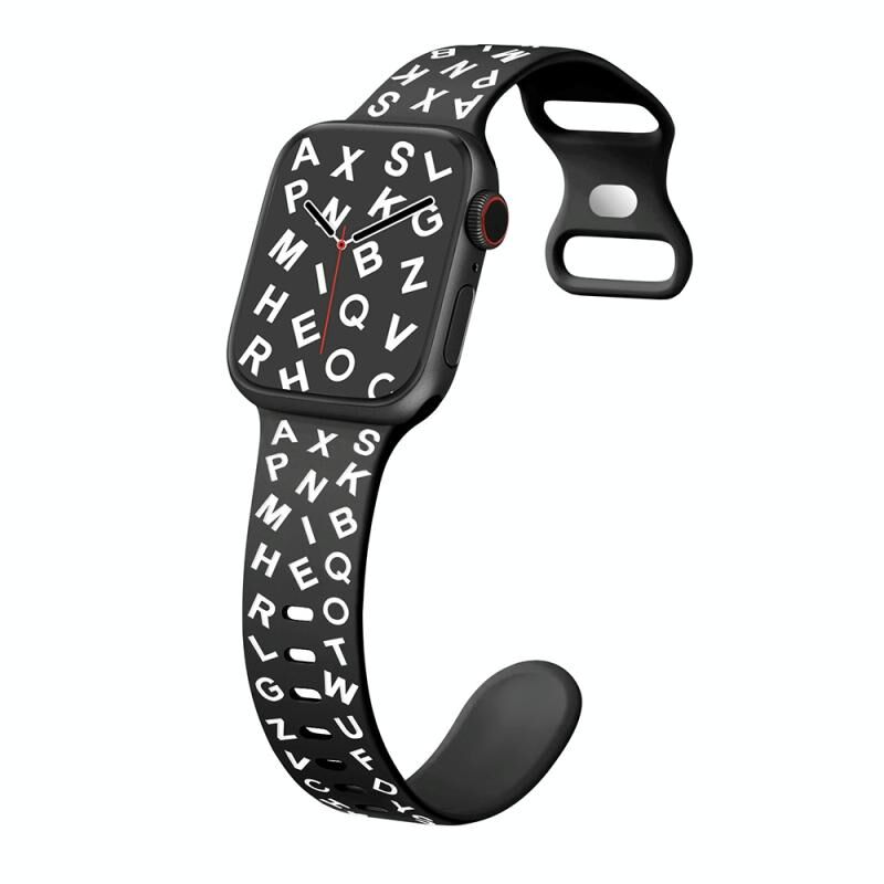 Για Apple Watch Series 6 44mm Λουράκι Σιλικόνης με Αγκράφα Πεταλούδας σε Αγγλικά Γράμματα (Μαύρο Λευκό)