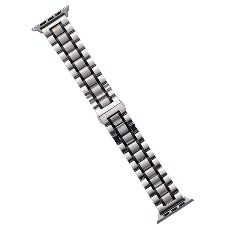 Για Apple Watch Series 6 44mm, Ατσάλινο Μπρασελέ Πέντε Χάντρες (Ασημί Μαύρο)