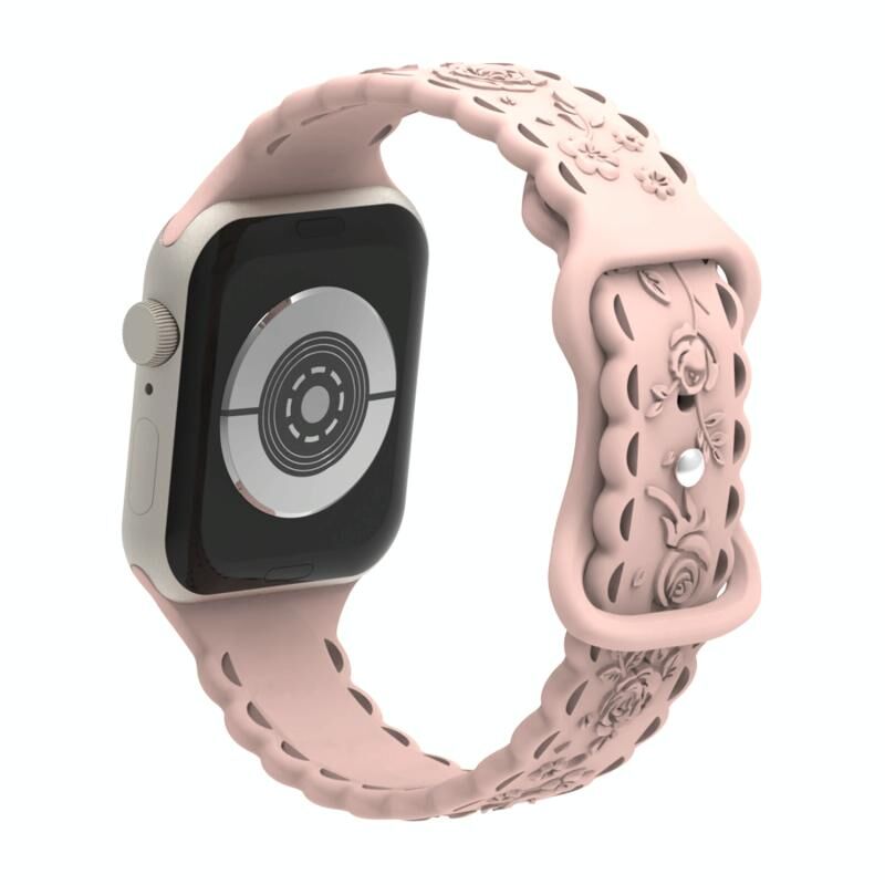 Για Apple Watch Series 6 44mm Δαντέλα 3D Ροζ Χαραγμένο Λουράκι Σιλικόνης (Ροζ άμμου)