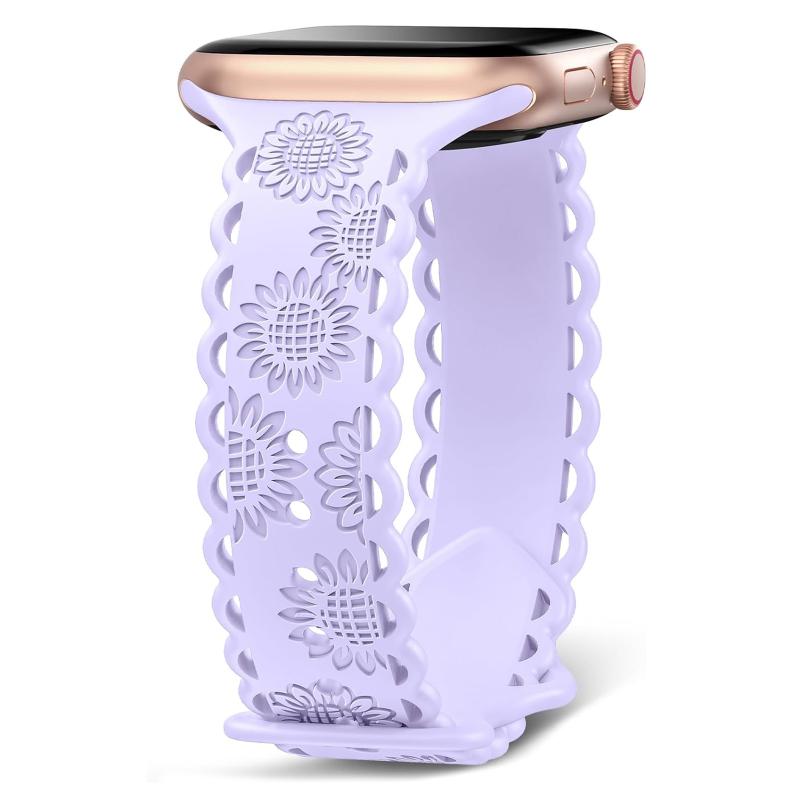 Για Apple Watch Series 6 44mm Λουρί Σιλικόνης με Δαντέλα και Χαραγμένο Ηλιάνθου (Μαύρο)