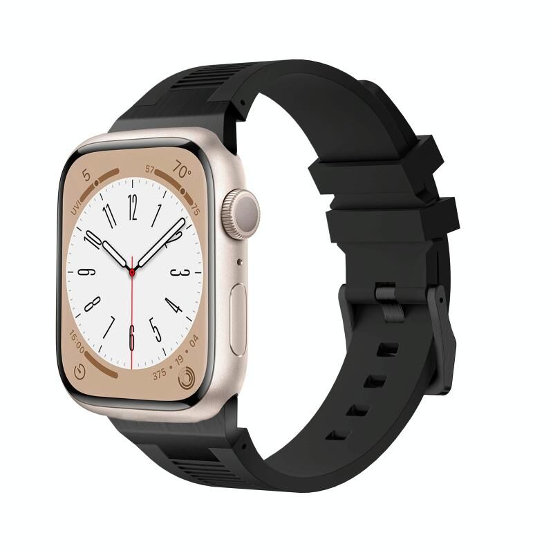 Για Apple Watch Series 6 44mm Λουράκι Σιλικόνης Υγρού Λάστιχου (Μαύρο Μαύρο)