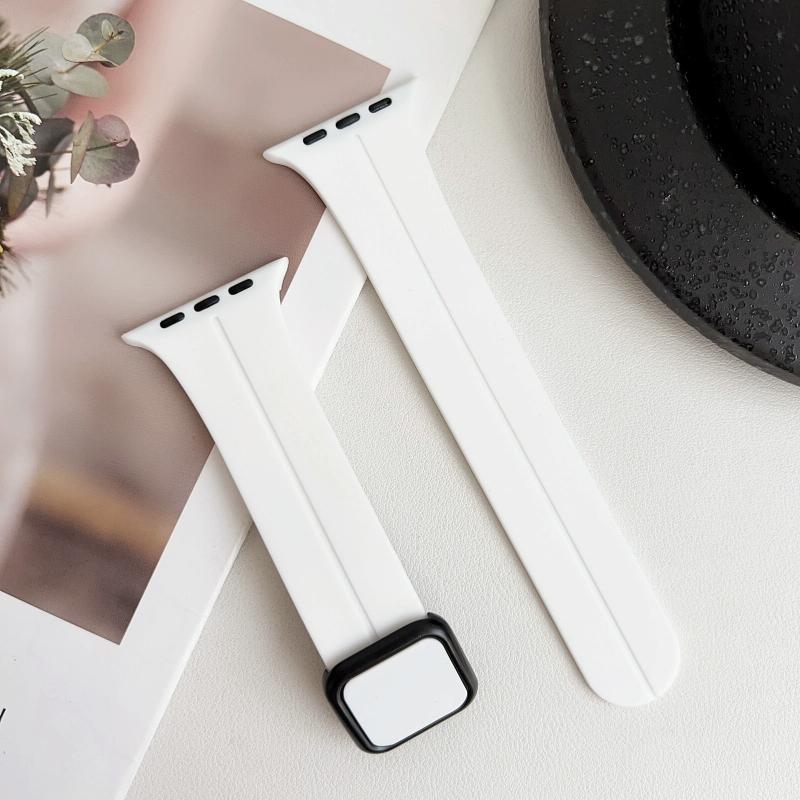 Για Apple Watch Series 6 44mm Μαγνητικό Λουρί Σιλικόνης με Αγκράφα Τετράγωνου Σχήματος (Λευκό)
