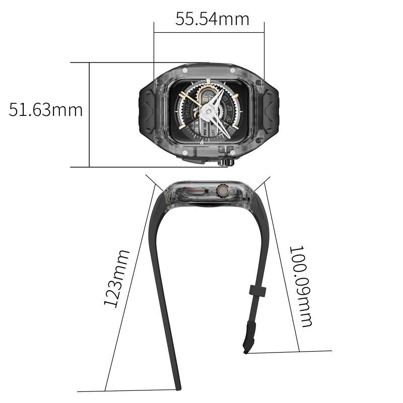 Θήκη ρολογιού για Apple Watch Series 6 44mm, τροποποιημένη υβριδική PC TPU με λουρί (Μαύρο Διαφανές Μαύρο)