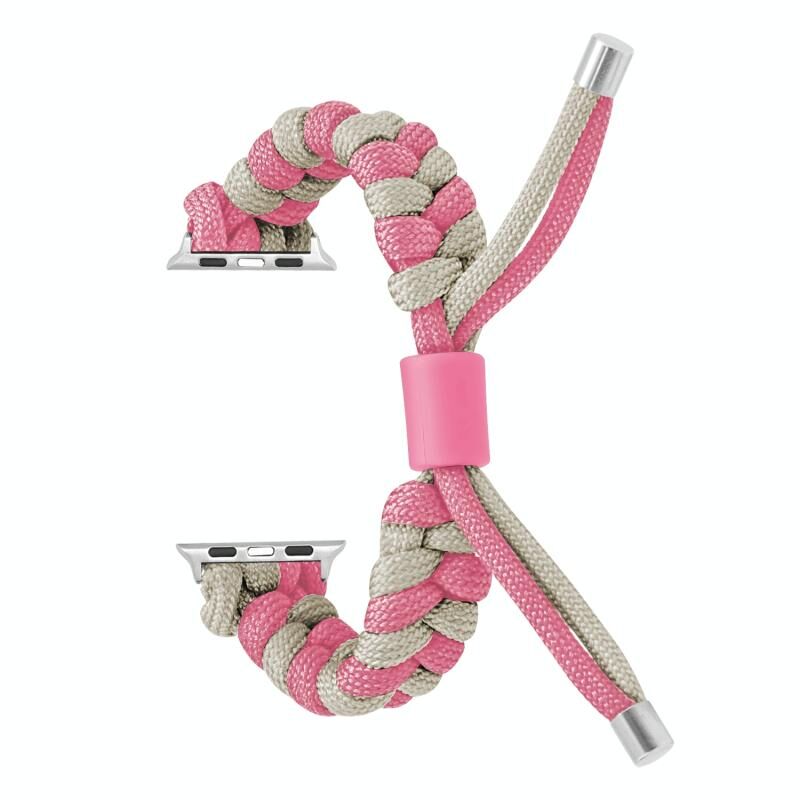 Για Apple Watch Series 6 44mm Λουρί Παρακολούθησης με πλεξούδα paracord fishtail και σιλικόνες (Ροζ Γκρι)