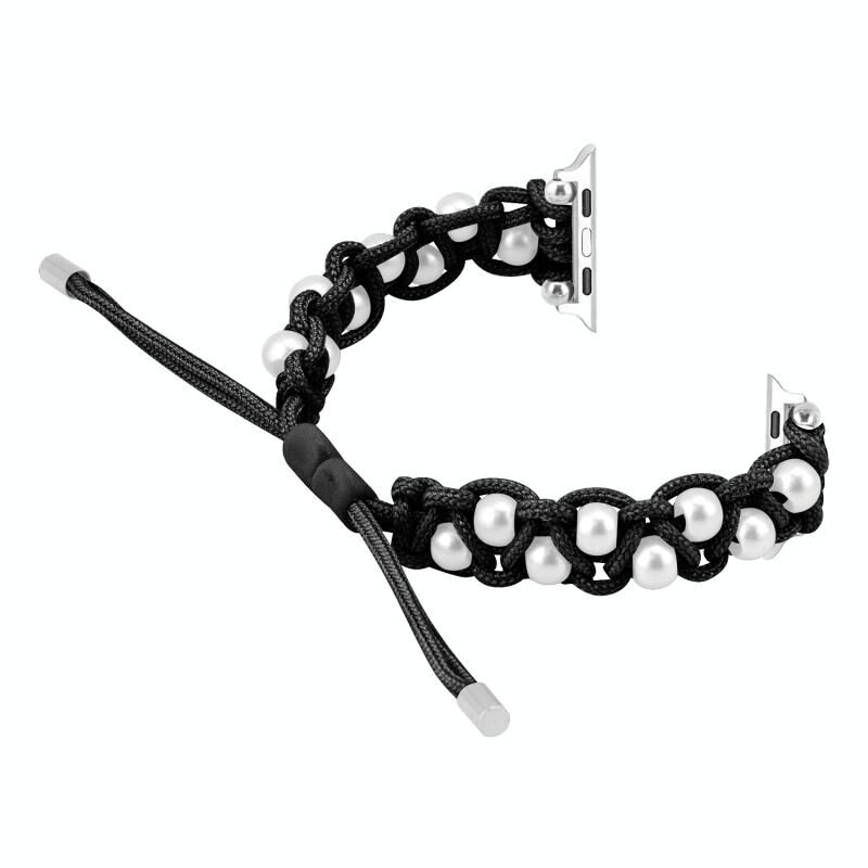 Για Apple Watch Series 6 44mm Λουρί Παρακολούθησης με κορδόνι Paracord, χάντρες Gypsophila και πλεκτή σχεδίαση με κορδόνι (Μαύρο)