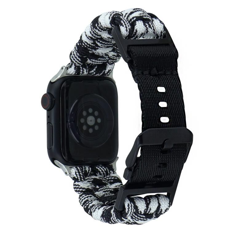 Για Apple Watch Series 6 44mm, Απλή πλεκτή λουρί καρπού από paracord με αγκράφα (Μαύρο Λευκό)