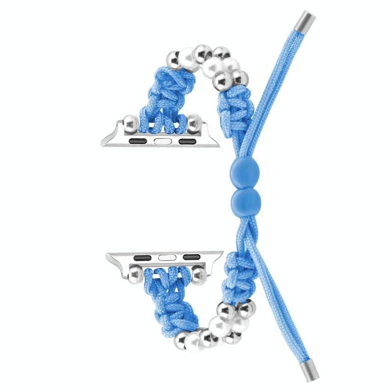 Για Apple Watch Series 6 44mm Λουρί Παρακορδίου με Χάντρες και Σχοινί, Πλεχτό (Μπλε)