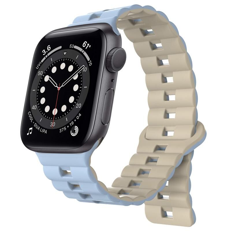 For Apple Watch Series 6 44mm Reverse Buckle Two Color Magnetic Silicone Watch Band(Blue+Starlight)