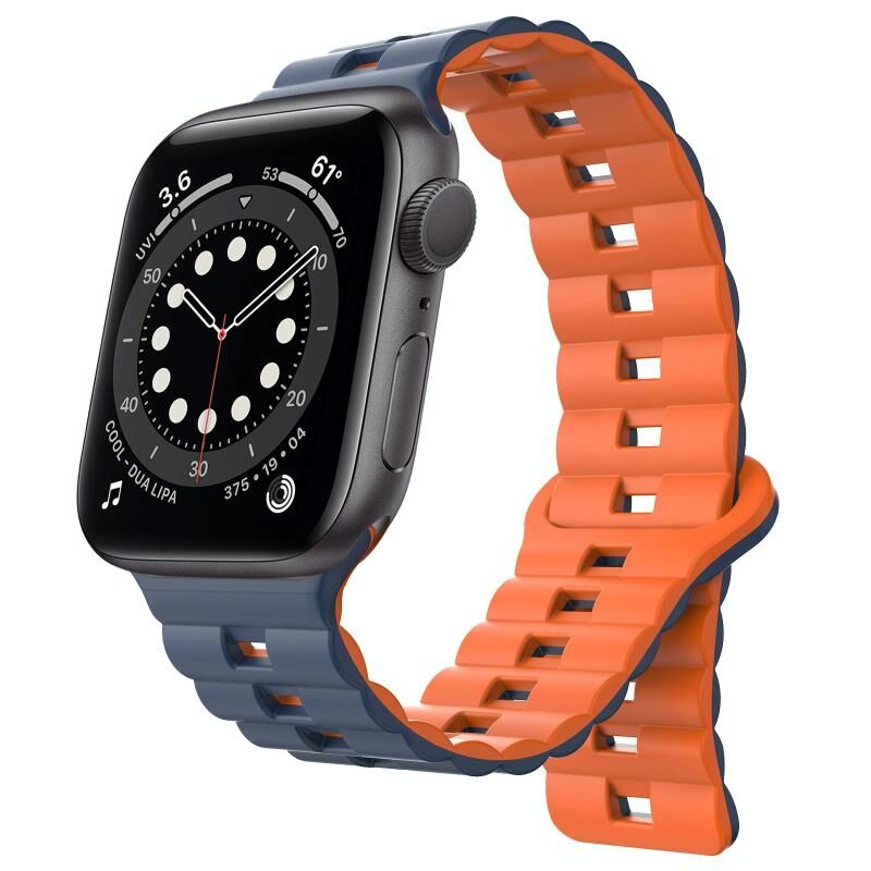 Για Apple Watch Series 6 44mm, Λουρί Σιλικόνης με Μαγνητικό Κούμπωμα Αντίστροφης Πόρπης, Δύο Χρωμάτων (Γκρι+Πορτοκαλί)