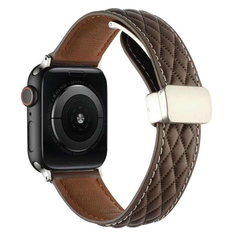 Για Apple Watch Series 6 44mm Λουρί Ρολογιού από Δέρμα με Μαγνητική Αγκράφα Δίπλωσης σε Σχήμα Ρόμβου (Σκούρο Καφέ)