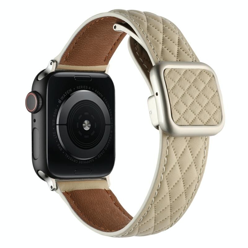 For Apple Watch Series 6 44mm Rhombus Pattern Magnetic Square Buckle Leather Watch Band(Starlight Color)