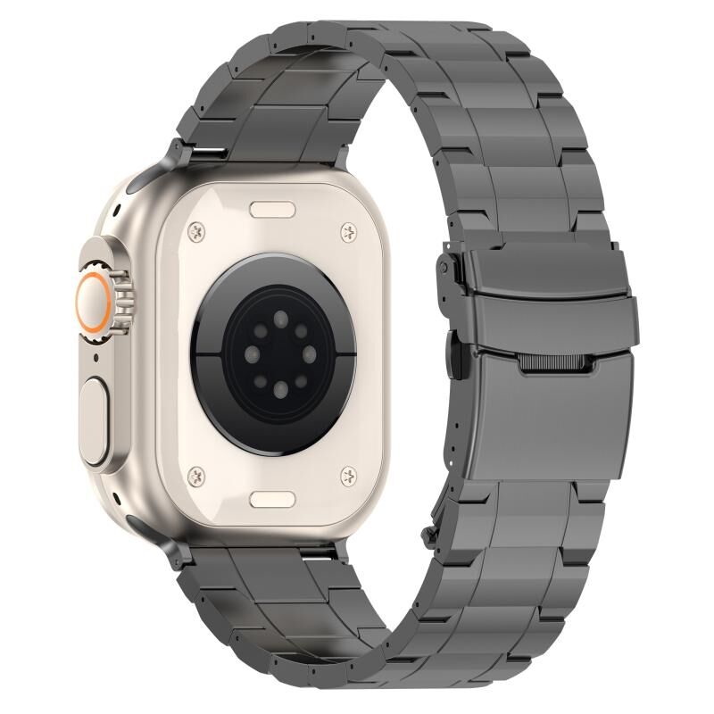 Για Apple Watch Series 6 44mm Ασφαλής Αγκράφα Τραπεζοειδές Λουρί Ρολογιού από Τιτάνιο και Ατσάλι (Γκρι)