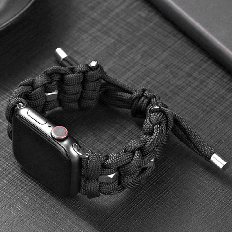 Για Apple Watch Series 6 44mm Βίδα Γκάιδα Πλεκτή Παρακορδική Ζώνη Ρολογιού (Μαύρο)
